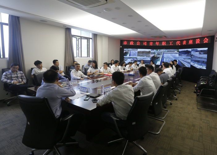 決賽采取競答形式進行,增加了施工生產安全方面試題,來自南京工程項目團支部等6個參賽隊進入了決賽,分為個人必答、團隊必答、搶答題、風險題和對抗題五個環節,題目通過PPT進行展示,六支代表隊各自選題進行作答,每個環節難度逐漸增大,氣氛緊張激烈,高潮不斷。最終來自成都地鐵8號線項目、福州工程項目、機電安裝事業部的三支代表隊分獲冠亞季軍。比賽結束后,市政公司團委組織召開青年職工代表座談會,來自基層單位的18名青年代表及機關各部門相關負責人一同參加了青年職工代表座談會。公司黨委書記、執行董事尹朝援,紀委書記翟新年,總工程師劉克亮應邀參會,并同與會青年暢談,充分掌握青年職工思想動態。