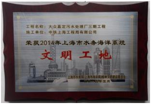 公司上海大眾嘉定污水處理廠三期工程項目部榮獲 “上海市水務(wù)海洋系統(tǒng)2014年度文明工地”稱號